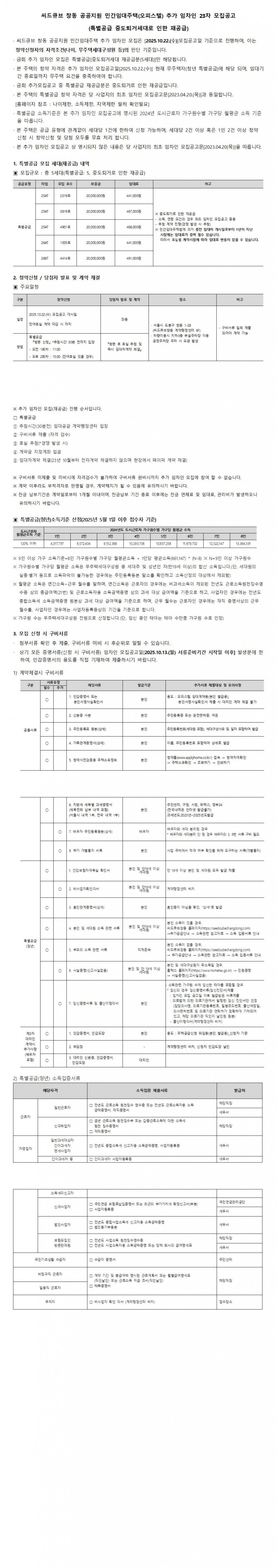 추가 모집일 : 2025.10.22.(수)~ 마감시 까지 [11시, 15시(11시 마감시 진행 없음) 서류 완비자 중 추첨 이후 당첨자 발표 및 계약진행]